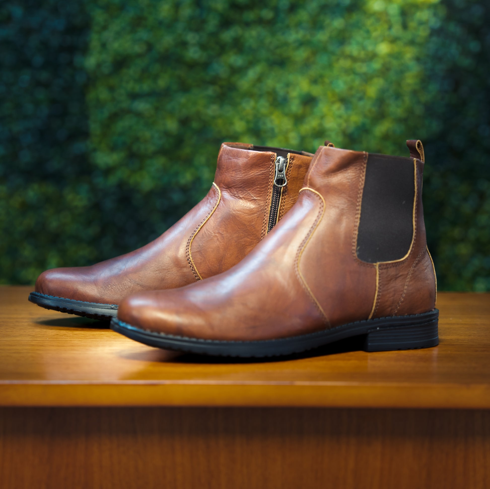 Su zipper lateral junto al elástico integrado aseguran un calce práctico y rápido, sin perder la elegancia ni la durabilidad del cuero.